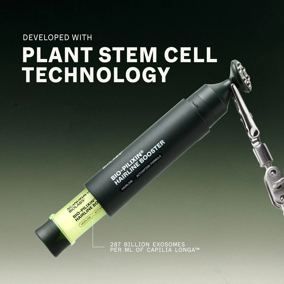 Sobald Sie bemerken, dass der Haaransatz zurückgeht, wird es Zeit, gegenzusteuern. Unsere klinisch getestete Bio-Pilixin®-Rezeptur verwendet Milliarden von Exosomen, um Wachstumsfaktoren und Signalpeptide gezielt zu den Follikeln zu transportieren. Mit dem präzisen Roller-Applikator gelangt das Mittel genau dorthin, wo es gebraucht wird. Dank des tragbaren, nachfüllbaren Designs ist die Anwendung so einfach wie flexibel – auch unterwegs. Einfach rollen und fertig.